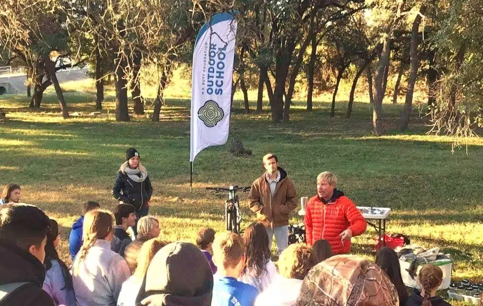 After orientation, the group moves to the first of many activities that Tasha and the school’s teachers and administrators have planned for the next two days: kayaking, geocaching, archery, high ropes elements, mountain biking, hiking, geology studies, water studies, and fishing. While the Outdoor School team—along with school volunteers and staff—leads smaller groups through all the planned activities, the whole group often hikes together to Circle Bluff to learn about canyon formation. Wednesday and THURSDAY nights find students on night walks, hearing from a visiting reptile expert, enjoying a classic campfire and s’mores, and night climbing overseen by the Outdoor School.