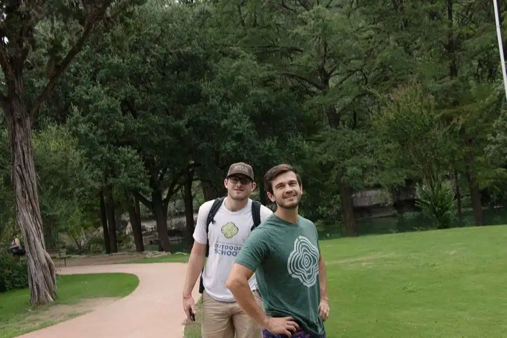 On FRIDAY, the team readies all the cabins for the next group. The cleaning, notes Myles with glee, leaves the cabins “spotless…pristine.” Then they gather to wave goodbye to the tired-but-happy kids as their bus wheels splash back into the Frio. After storing all equipment, the Outdoor School staff discusses highs and lows of the week, considering areas of improvement and what worked particularly well. Then, they return from the Canyon for the WEEKEND until they prepare again for the next school next week.