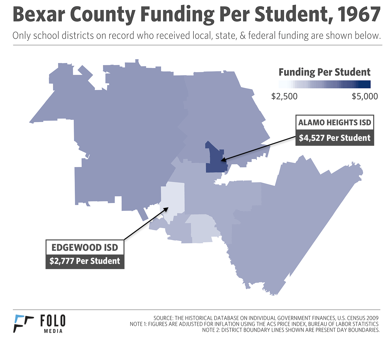 But the disruption never came. On March 21, 1973, the court ruled against Demetrio Rodriguez and the other Mexican American families from Edgewood. Education, they found, is not explicitly enumerated in the constitution as a right, so it could not be protected under the Fourteenth Amendment.