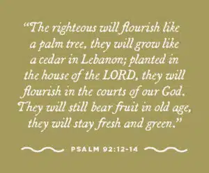 Should you wonder whether flourishing is really possible in the third third of life, let me remind you of a promise found in Psalm 92:12-14, “The righteous will flourish like a palm tree, they will grow like a cedar in Lebanon; planted in the house of the LORD, they will flourish in the courts of our God. They will still bear fruit in old age, they will stay fresh and green.”