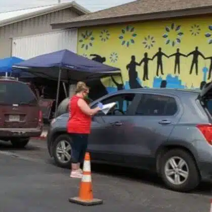 Joshua Mireles delivers a meal to a senior citizen's home.