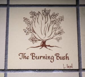 Lavernis Royal (1935–2008) was employed by H-E-B for over 40 years in the Signage and Design department. Most likely, Mary Holdsworth Butt hired him to create these flourishes, one of many design decisions that make Laity Lodge so original. She specifically avoided Scripture in public spaces that might feel off-putting to non-Christian guests, but Mr. Royal’s tiles at the bottom of Black Bluff are explicitly Christian illustrations of Biblical symbols, Bible verses, and poetry, providing a hidden haven for a minister experiencing the “holy depletion” of pastoral care. Gospel reminders were needed here—stalwart yet meek.