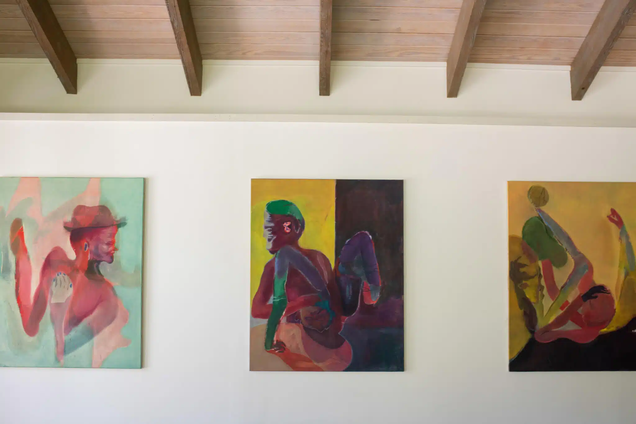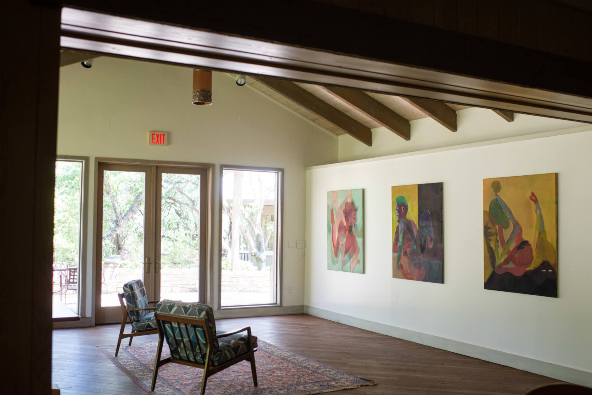 Meanwhile, Daniel and Christopher were creating remarkable work of their own, both in visual and theatrical contexts. When Steven moved to Laity Lodge, he brought Christopher’s theatrical productions to the Cody Center, and both brothers contributed to retreat workshops. Daniel’s artwork was gathering acclaim, and his paintings made their way to a wall calendar hanging beside Steven’s desk. Through the end of 2022, the real paintings are hanging at the Lodge, in a Cody Center exhibition titled Stature of Waiting.