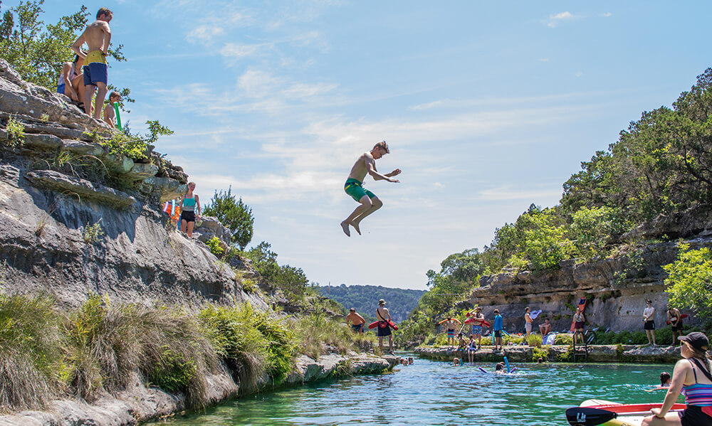 It was the night of a girl-guy split, and the guys were gathered at Echo Valley’s Pebble Beach for a chili cook-off. Speakers were blasting Texas country from the banks of the Frio, and campers were wrestling and dunking each other. Everything seemed perfectly LLYC until Tom, Echo Valley’s director, looked up from a pot of chili to see four guys looking down at their phones, their faces illuminated in the bluish glow of screenlight.