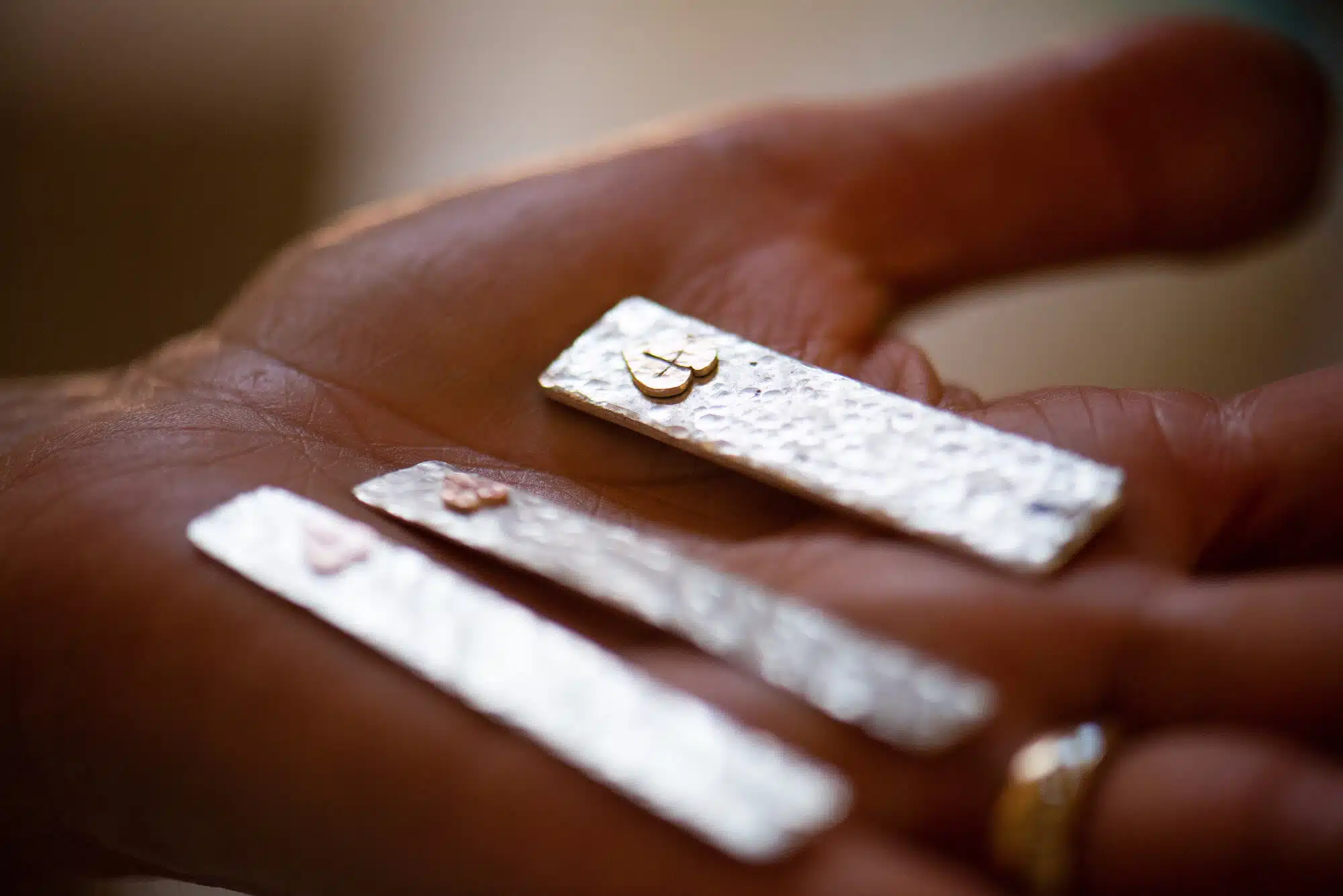 “As I was carving my piece down,” Annie says, “I noticed these cedar mulch spots that Casey pulled out to reveal scars in the wood. He told me I could carve them out if I wanted to, but it made me think: The scars are what make it unique. Like us. I thought, I want to celebrate imperfections and welcome scars and weakness because the result is beautiful.”