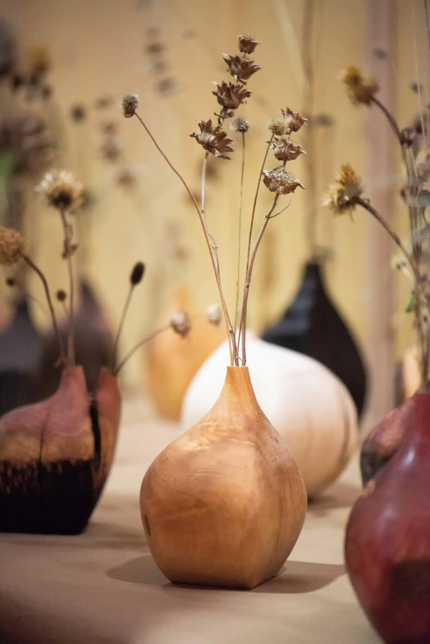 So Annie signed up for woodworking with Casey Reed Johnson, a sculptor, designer, and furniture maker. In the class, guests carved cedar bud vases with knives and chisels. Some guests even burned the wood before sanding and oiling it to reveal the vase’s unique character.