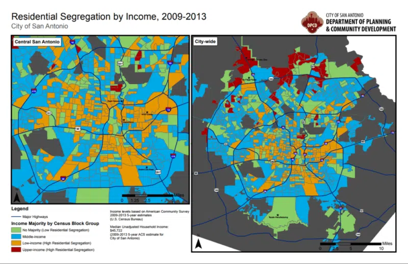 The study found that 38% of San Antonio’s lower-income households live in lower-income census tracts, while 25% of upper-income households live in upper-income census tracts.