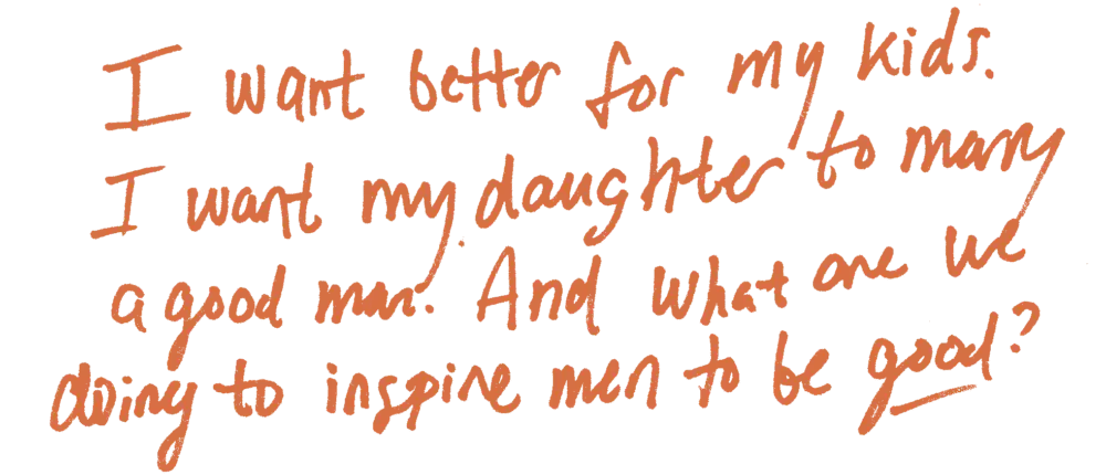 Do the boys resist this exercise? Every time. Do they try to bail? Of course. “But that’s why we have other men there” spread throughout the room, says Vasquez. “[To say:] No, it’s okay. We have to help them work through this.”