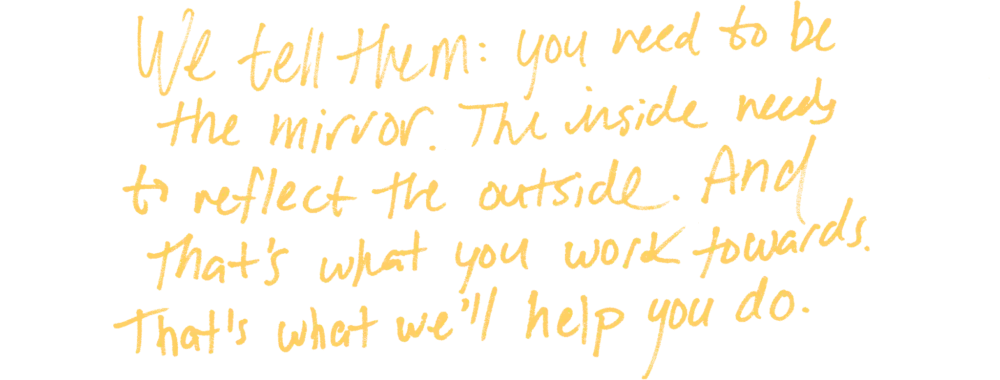 “We tell them: you need to be the mirror. The inside needs to reflect the outside. And that’s what you work towards. That’s what we’ll help you do.”