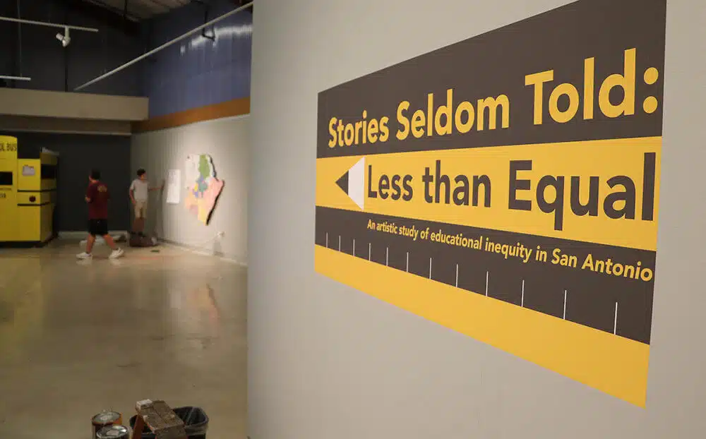 The exhibit is part of “Stories Seldom Told: Less than Equal,” an artistic study of educational inequity in San Antonio and its effects on the youth who experience it on a daily basis. Student choose topics for the event.