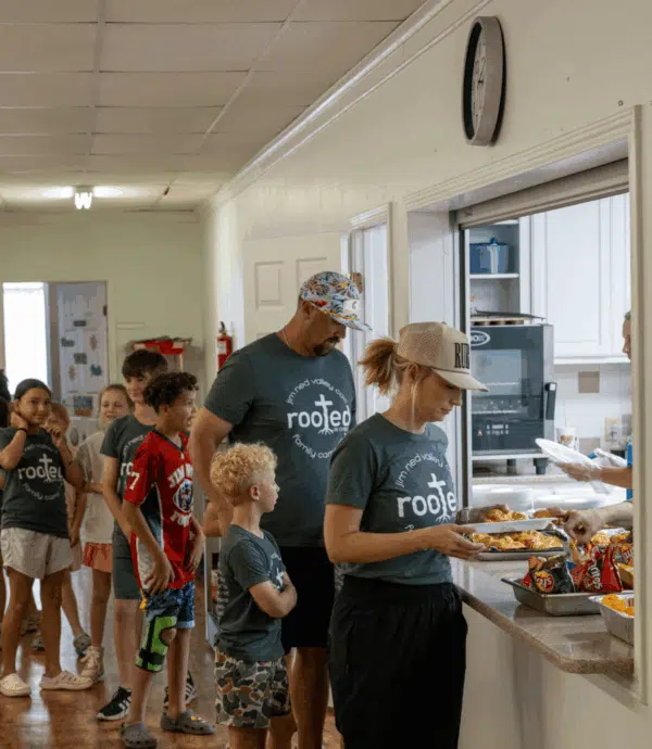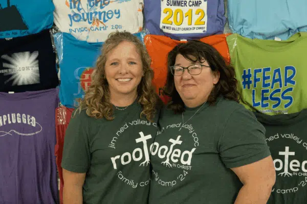 On the last regular Wednesday night dinner of the school year, most of the people were wearing last year’s Family Camp shirts. Prince showed us a wall with a grid of t-shirts from years past, each designed by different members of the church. Videos from past family camp trips played on monitors around the room. Parents dropped off registration forms outside the sanctuary. Last year they took 158 people, and this year registration topped 160. Like the Wednesday night dinners, camp is a big lift for an all-volunteer team. But for Jim Ned Valley Church of Christ, the payoff is measured in generations.