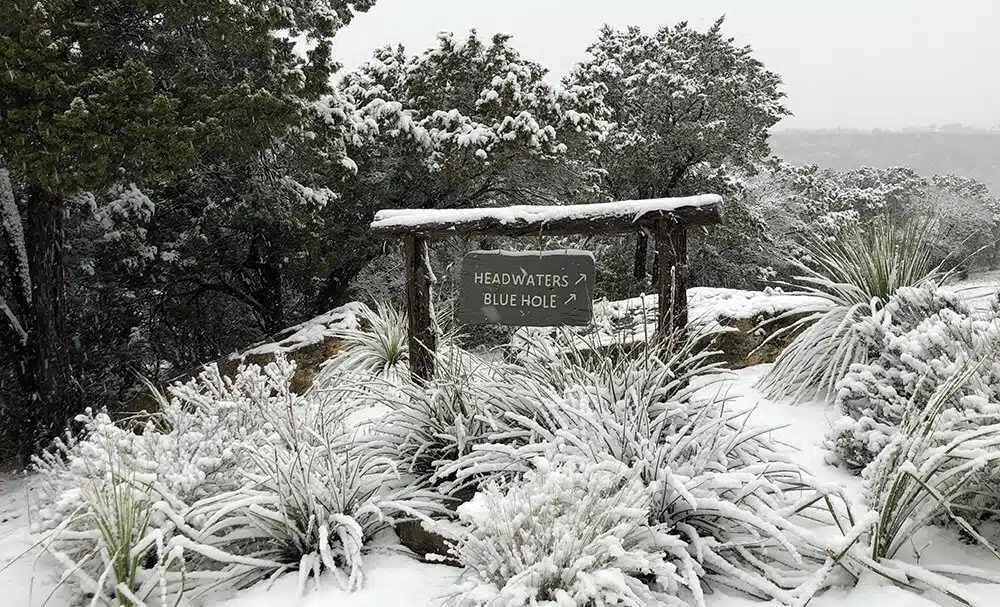This year, though, the Canyon received nearly a foot of snow and several inches of ice. From February 10-18, the Foundation Camp property just north of Leakey in Real County faced freezing temperatures—often in the single digits—for seven full days.