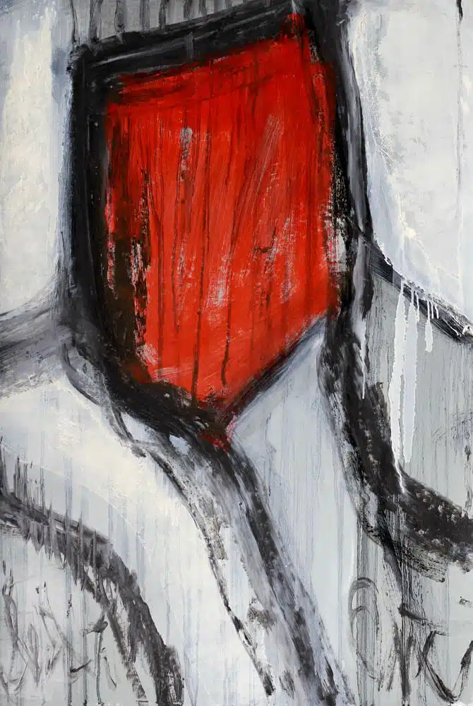 Taylor said, “I hoped to provide a visual timeline of these last five years since Jimmy’s diagnosis … We start with earlier detailed work and move onto the recent and very tactile pieces where, as the artist puts it, ‘my hands are my brushes now.’