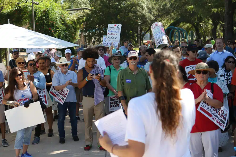 More than 100 people assembled at Hemisfair park on Saturday in the blazing heat during the Medicare For All march. Sofia Sepulveda, co-chair of Healthcare-NOW San Antonio Coalition, addressed the marchers during a rally about single-payer health care.